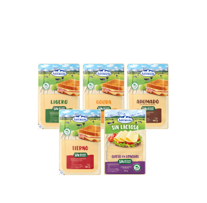 Descubre nuestra gama de queso en lonchas compuesta por las variedades: Central Lechera Asturiana Tierno, Ligero, Sin Lactosa y Ahumado. Elaborados con ingredientes naturales sin aditivos artificiales, estos quesos en lonchas se caracterizan por su cremosidad y exquisito sabor.