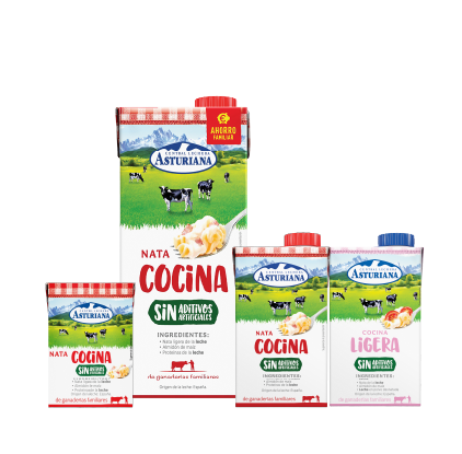 En Central Lechera Asturiana también pensamos en las personas intolerantes a la lactosa. Por eso, puedes encontrar natas sin lactosa en formato brik para montar o cocinar y también en spray. Porque no queremos que los intolerantes a la lactosa tengan que renunciar al mejor sabor de la nata.